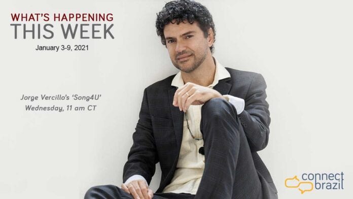 Connect Brazil’s Events section has top choices for January, including Friday evening’s YouTube concert by Daniela Soledade and Nate Najar, Brazil Classico and a pair of full length, on-demand virtual concerts by Brazilian jazz pianist Ricardo Bacelar.